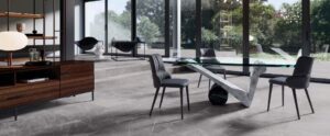 Un modèle qui séduit par son éclat minéral, ses veinures naturelles et sa surface lumineuse inspirée du Grigio Carnico, un marbre de Frioul en Italie du Nord.